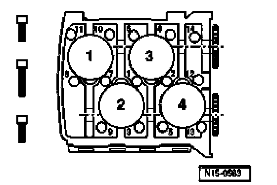 Note: The longer cylinder head bolts must be inserted in the middle holes of cylinder head.
