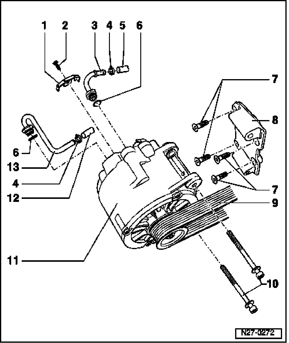 - Ribbed belt routing. Refer to Ribbed belt - 8-cyl. engine, checking