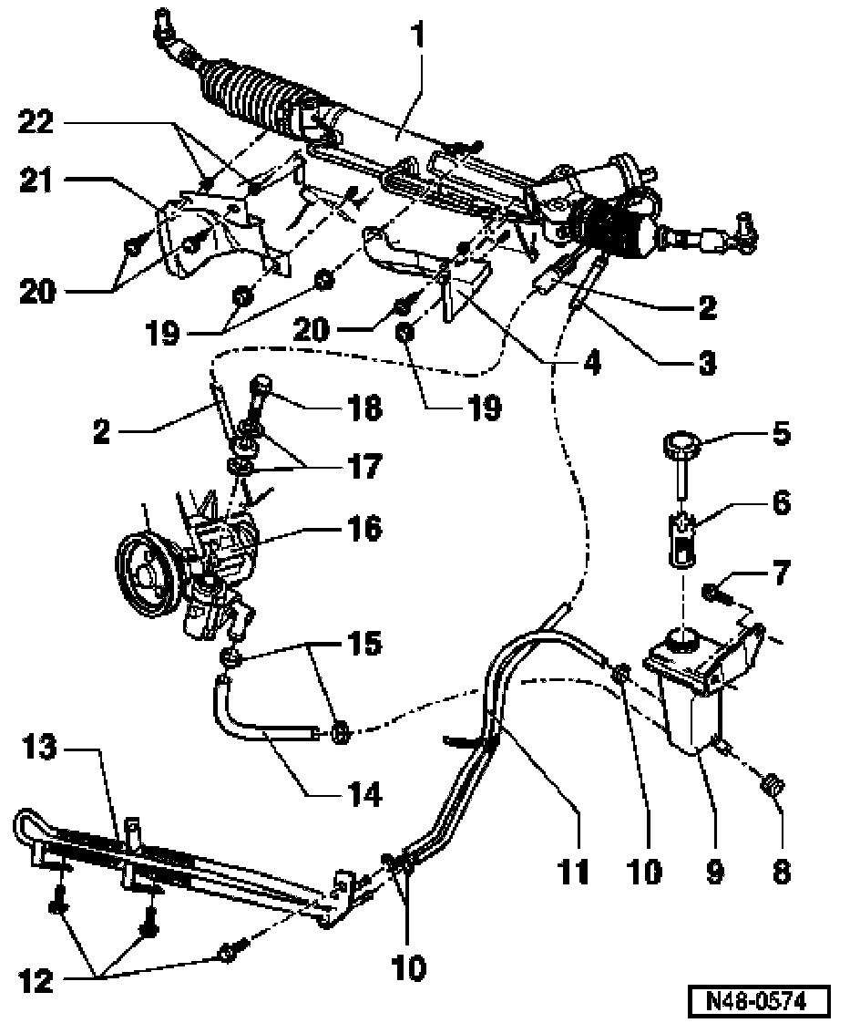 It is not intended that repair work be carried out on the power steering pump. If complaints are received determine cause with the help of pressure tests, leakage test and fault finding, steering gear No. 10. If a fault exists replace power steering pump.