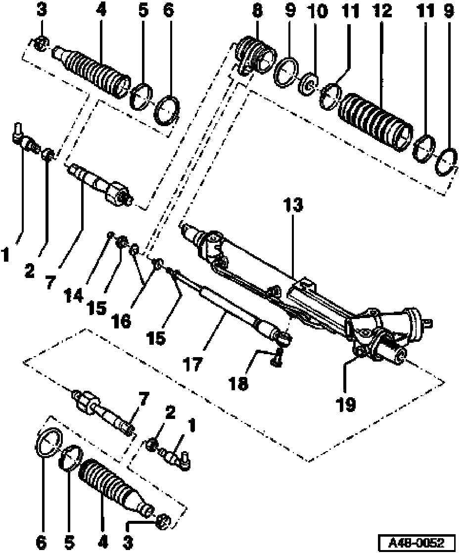 - Only use steering gear grease, Part No. AOF 063 000 04 to grease the rack.