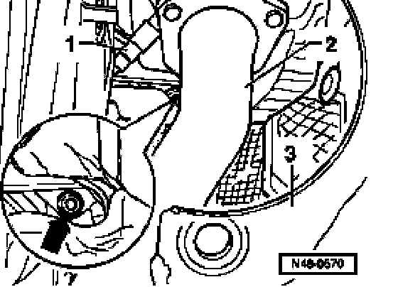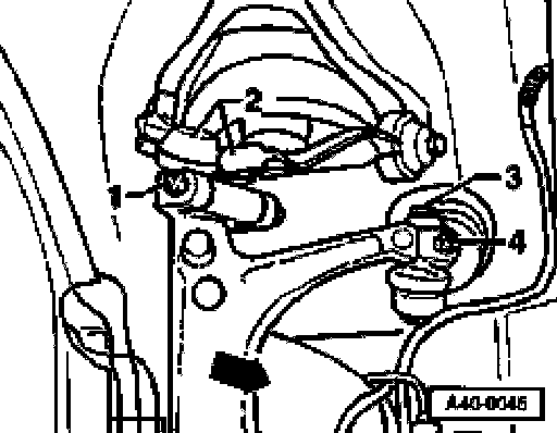 - Remove hex bolt -3- and bolt -4-.