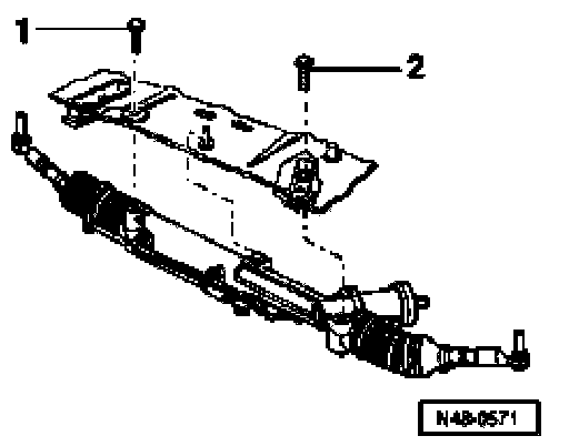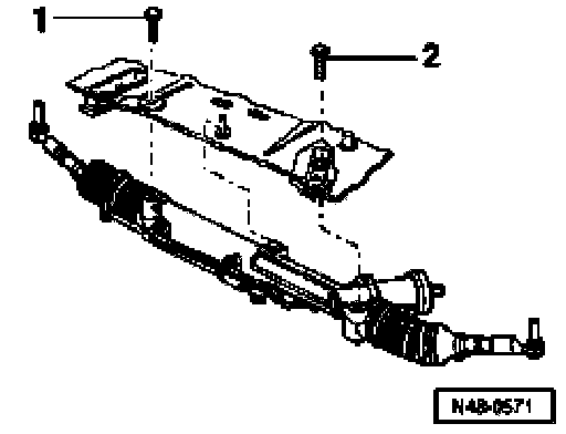 - Remove steering gear bolts -1- and -2- in plenum chamber.