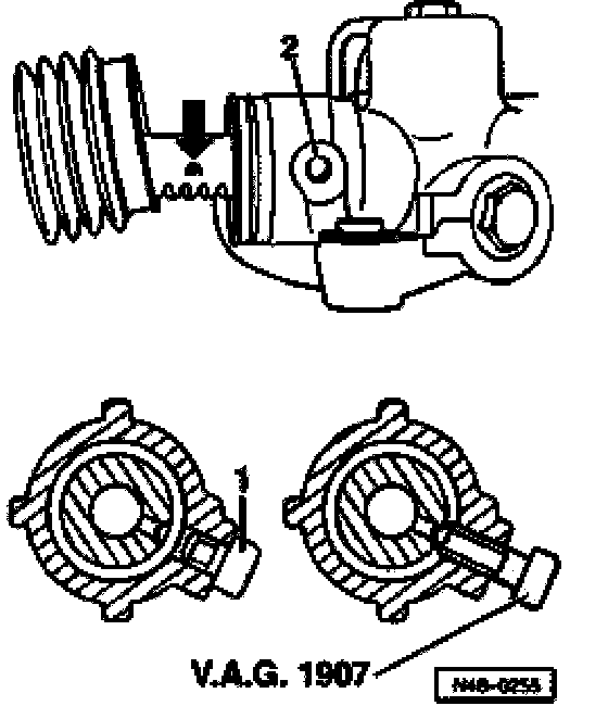 - Now remove tool -VAG 1907- from steering gear.