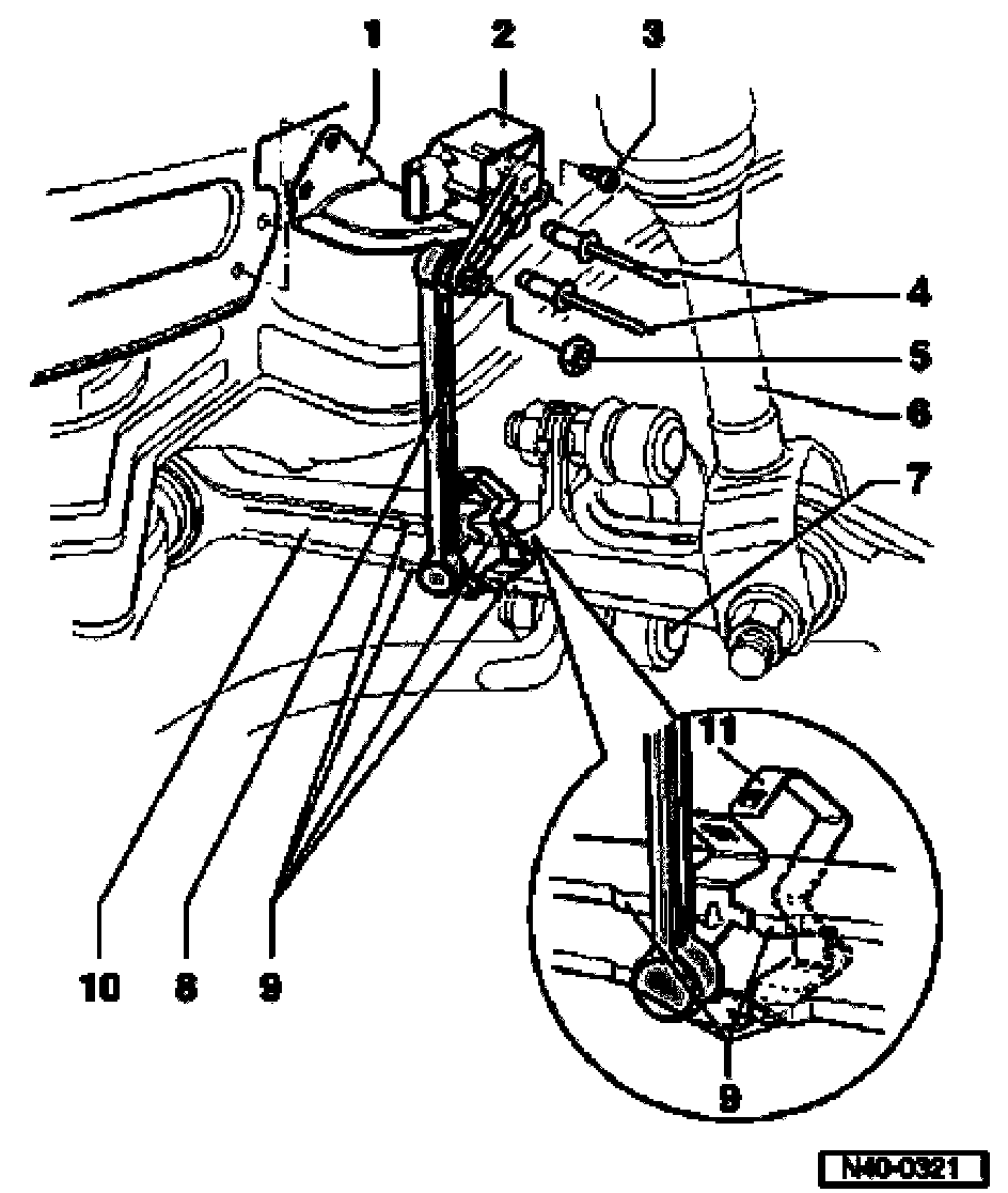 8. Coupling rod from left front level control system sensor -G78
