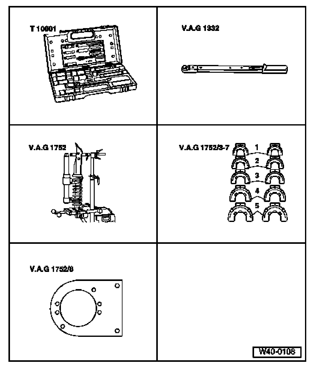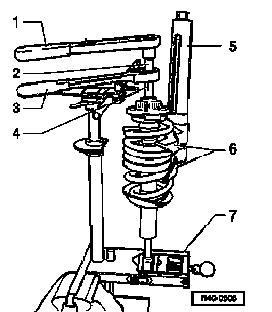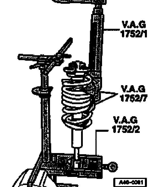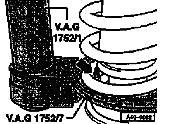 - Tension coil spring with - VAG 1752/1- tensioning device until the upper spring plate is free.