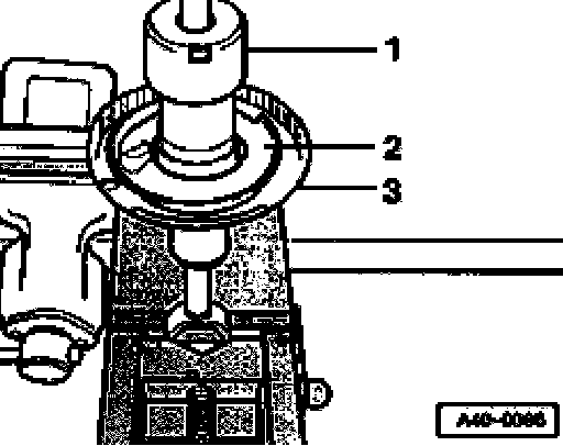 - Take off individual parts of suspension strut and coil spring with tensioning device - VAG 1752/1-.