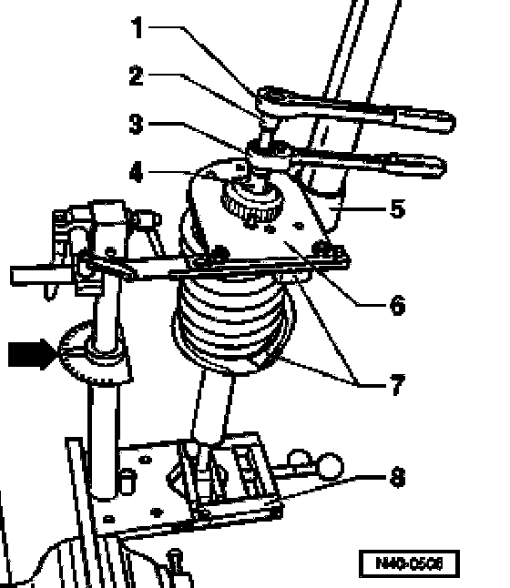 - Make sure that the coil spring is seated correctly in adapter VAG 1 752/7 -arrow-.