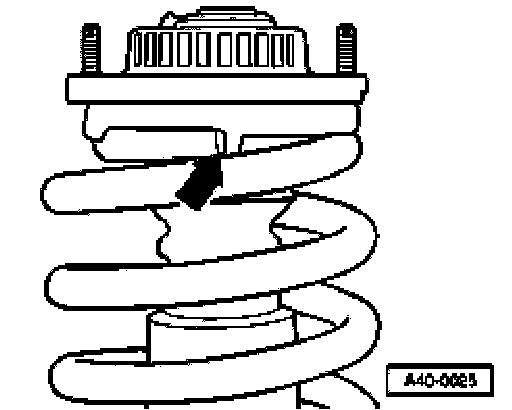 - The end of the spring must lie against the upper spring support stop -arrow-.