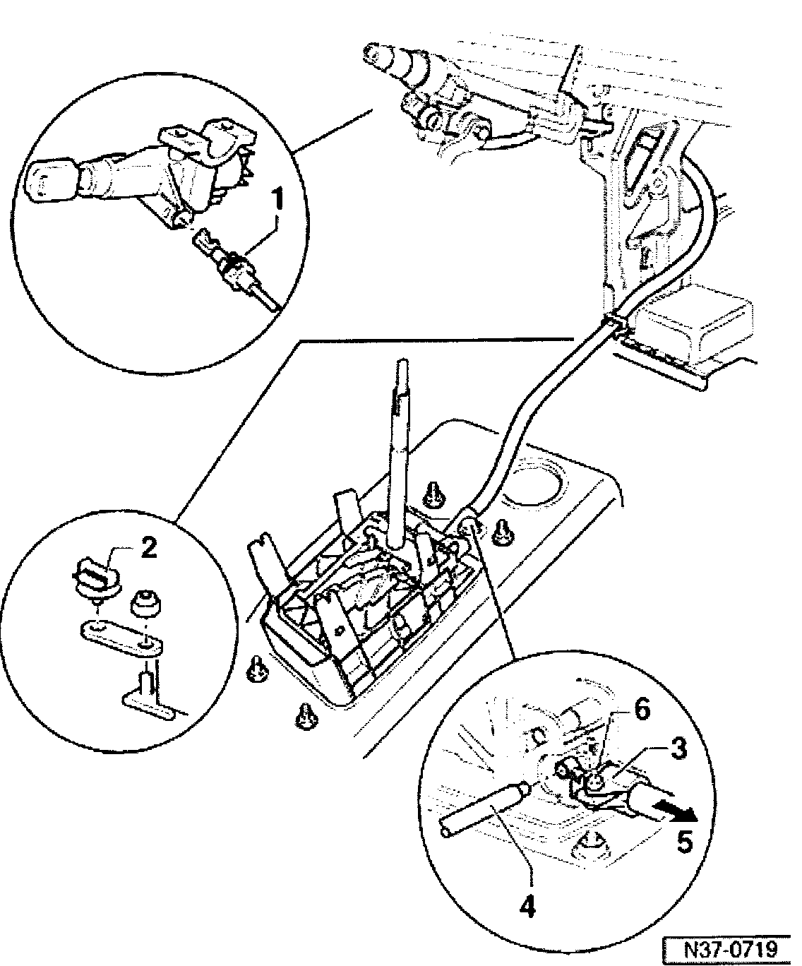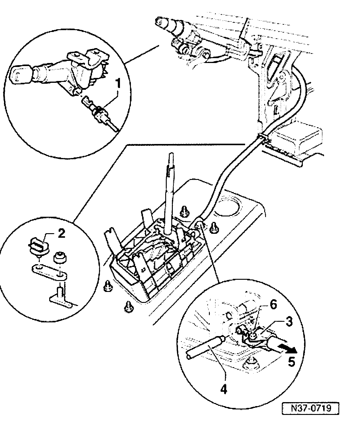 - Release locking clip -1- and pull locking cable out from ignition/starter switch.