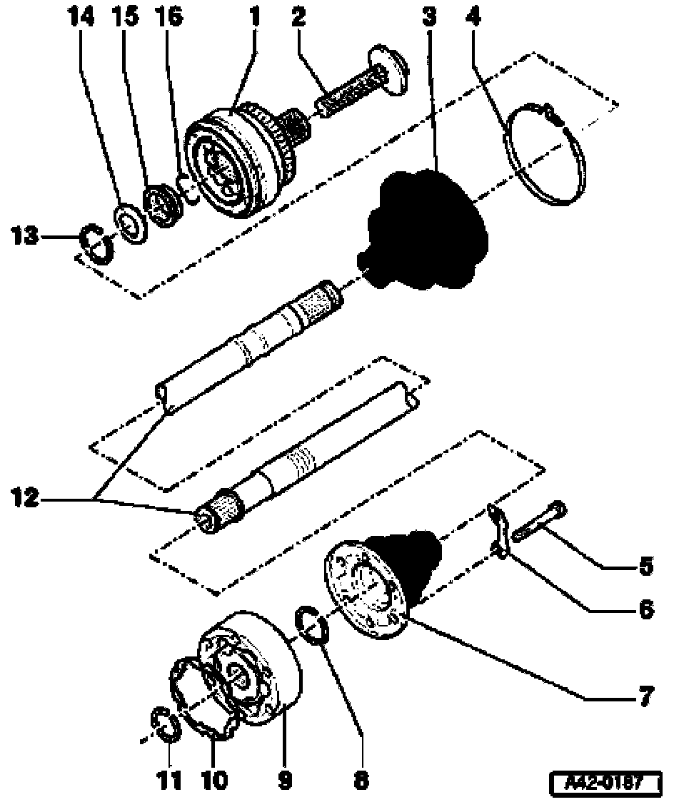Note: Chamfer on inner diameter of ball hub (splines) must face the contact shoulder on the drive shaft.