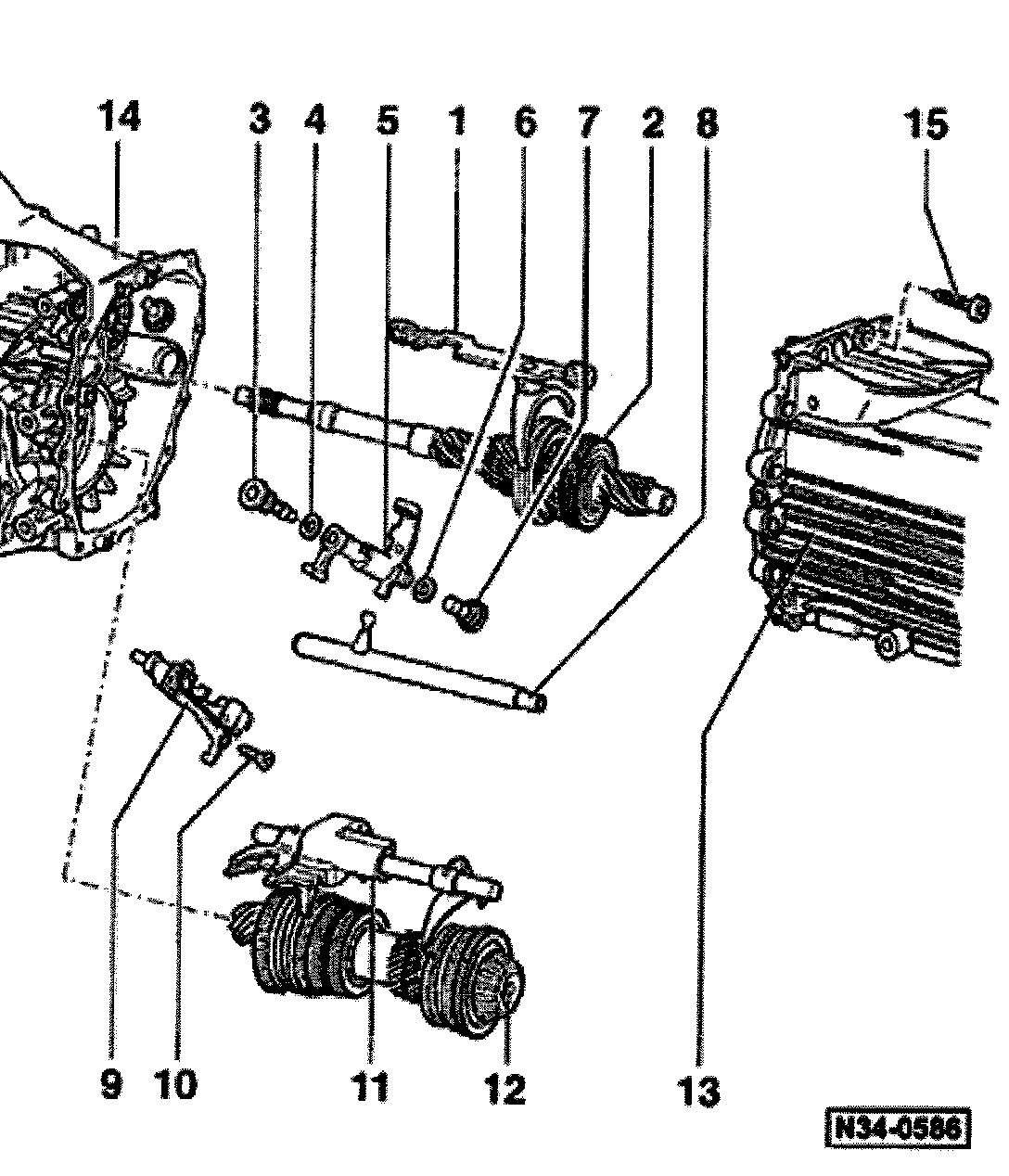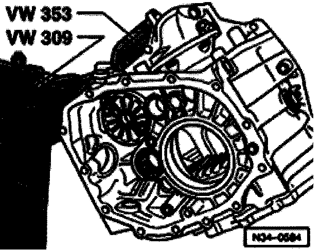 When the input shaft ball bearing, the input shaft or the transmission housing is replaced, first of all the thickness of the circlip for the input shaft must be redetermined.