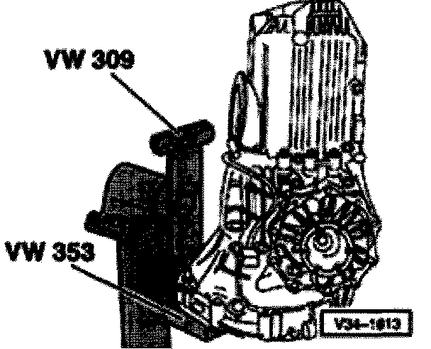 - Turn transmission housing and engage 3rd gear (direction of arrow).