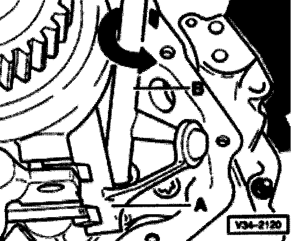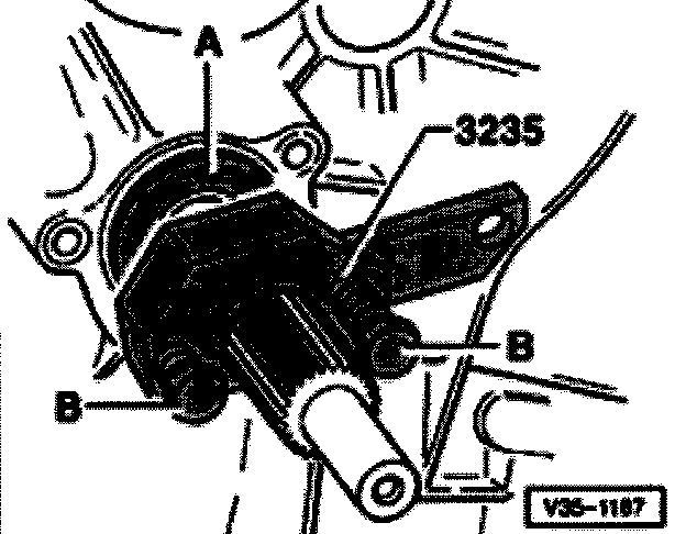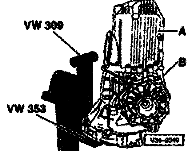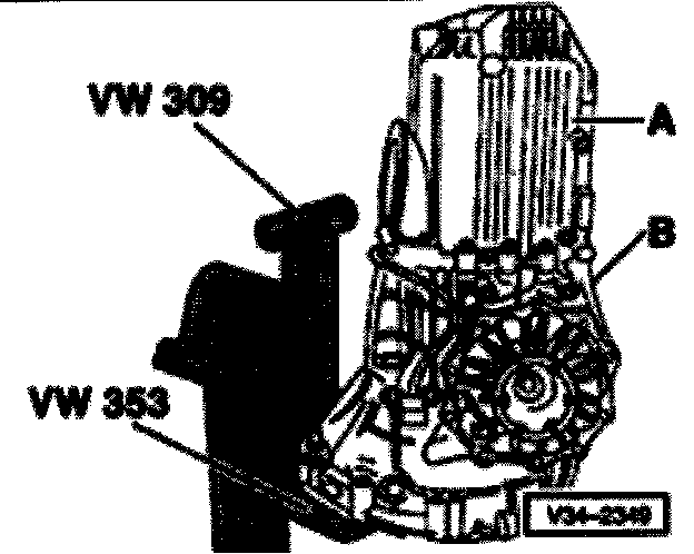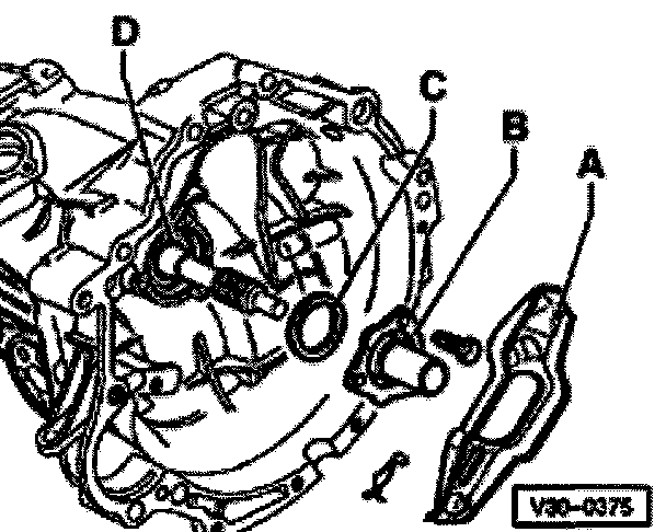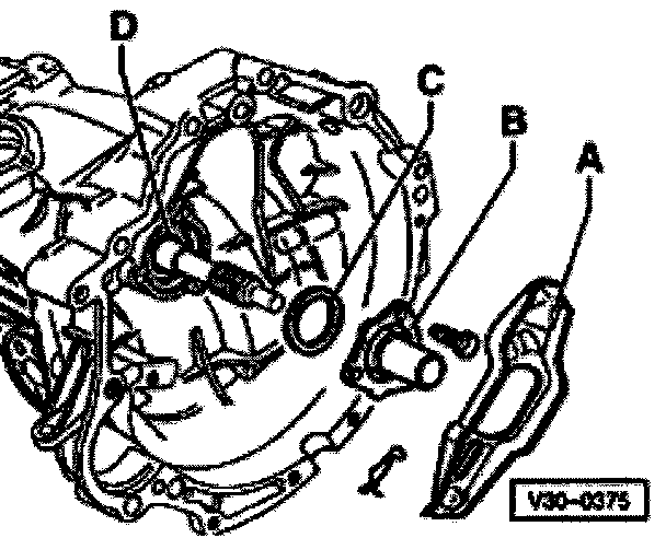 - Unbolt transmission cover -A- from transmission housing -B-.