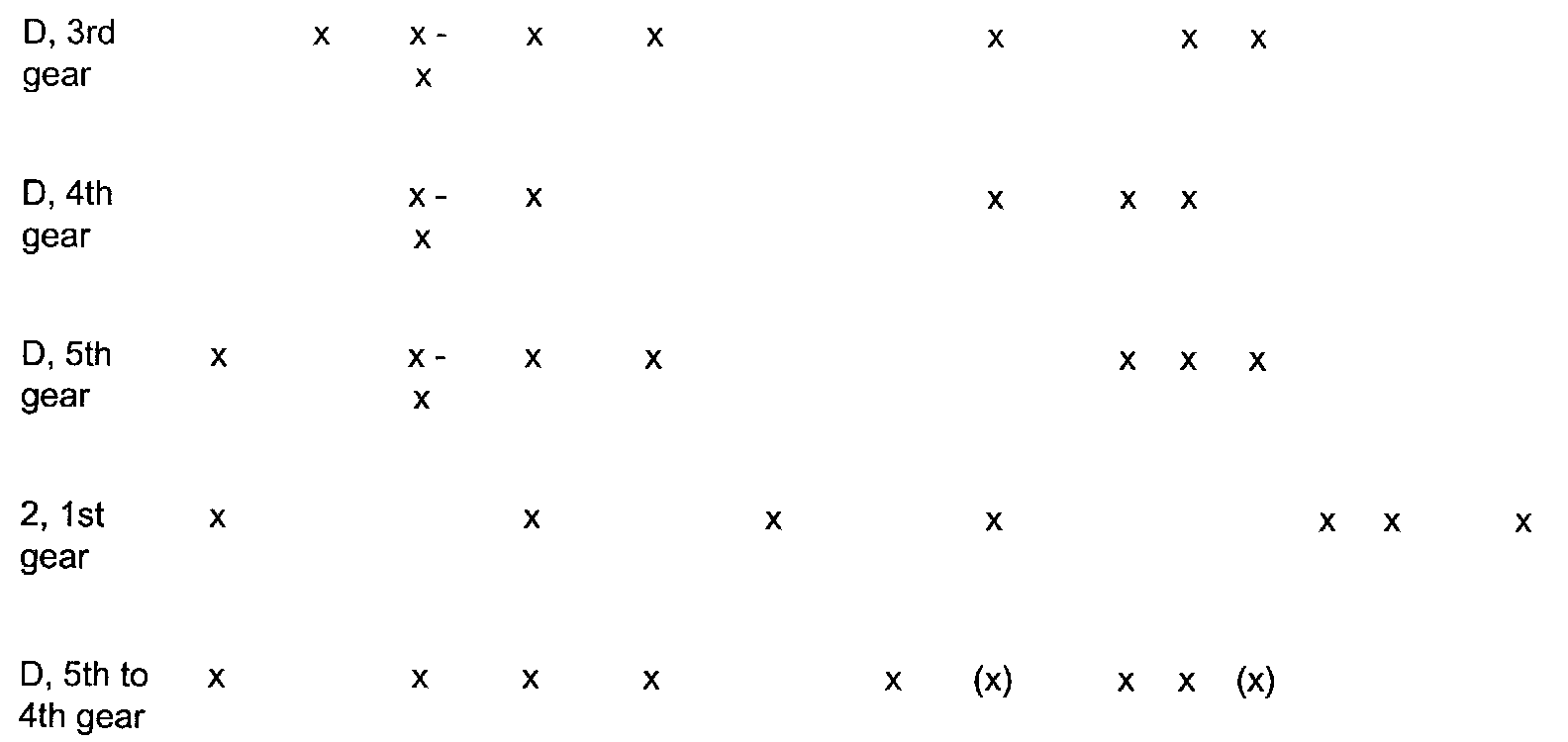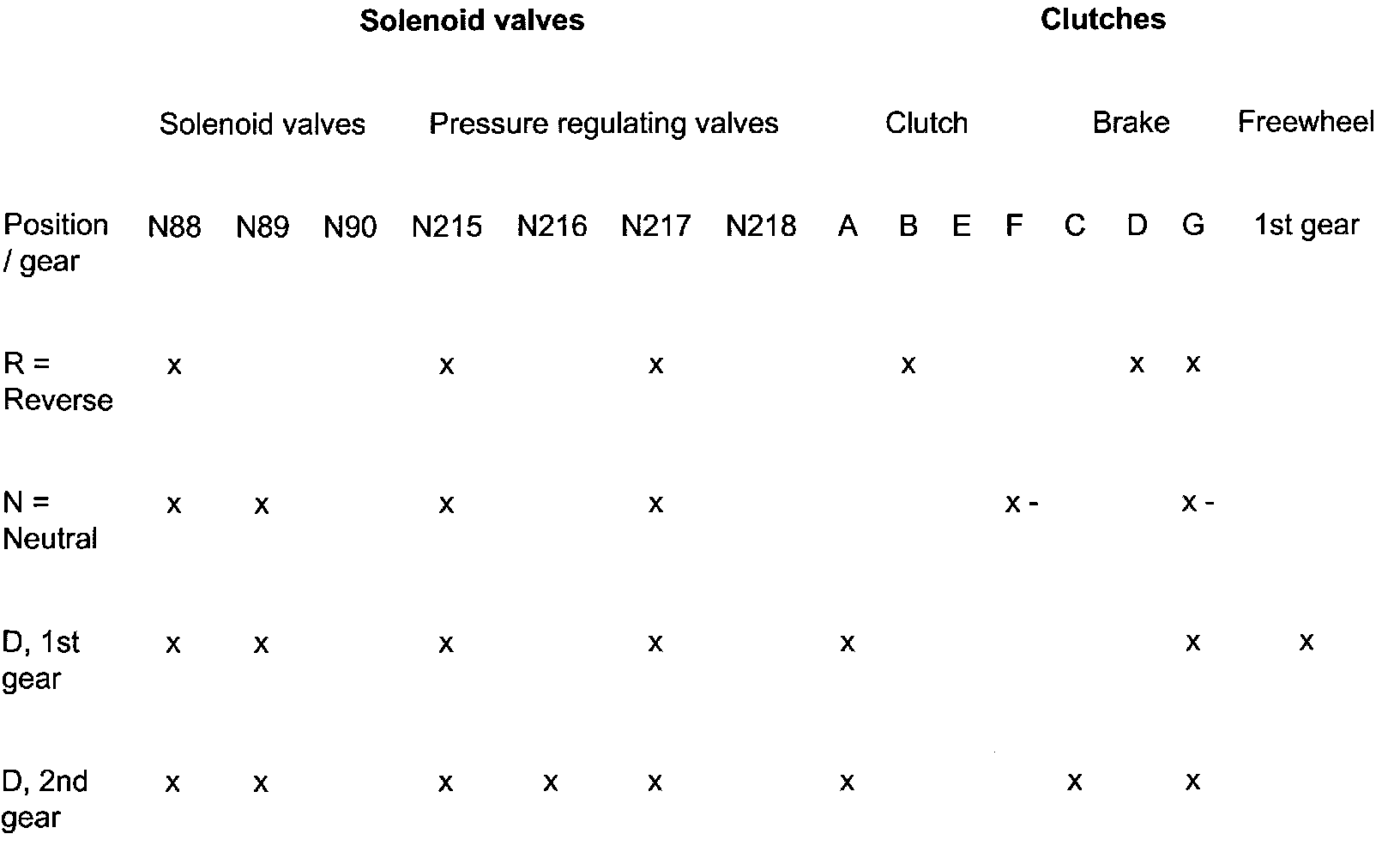 - If complaints are made about poor acceleration and speed performance or about the drive in general, the following table can be used to determine which selector elements operate in which gears. Using a process of elimination, faulty selector elements can be therefore be identified.
