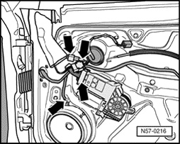 If door window cannot be lowered using electric window regulator, proceed according to description found on pages:.