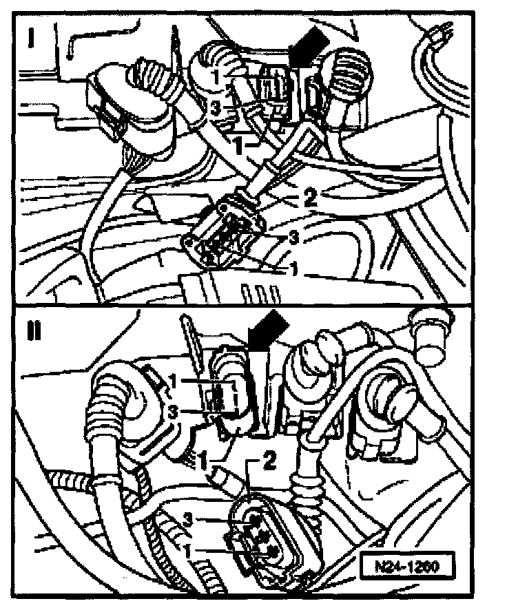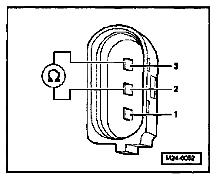 - Measure resistance of sensor between terminals 2 + 3 of connector -1-. Specification: 400 to 1000 Ohms