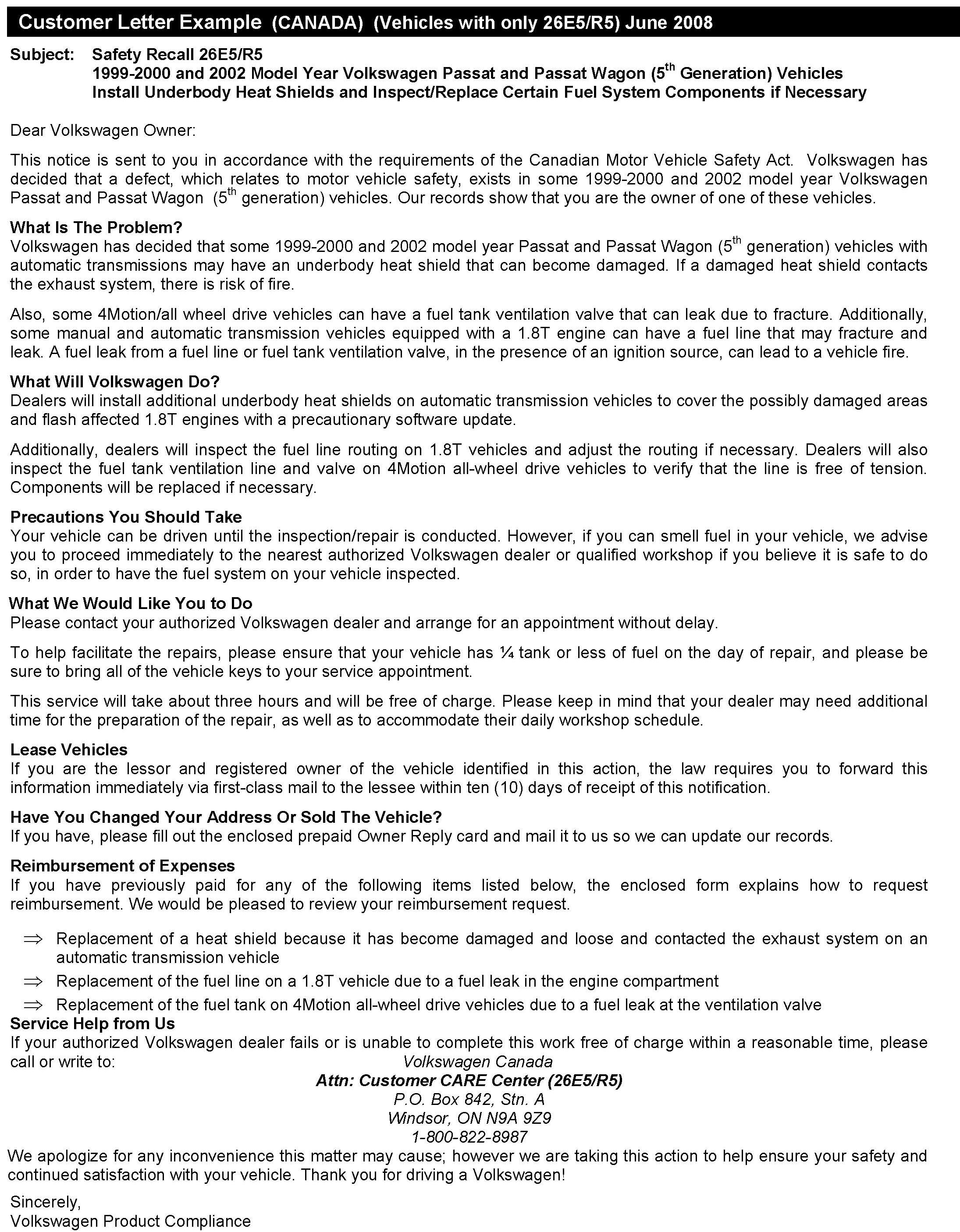 Customer Letter Example Canada