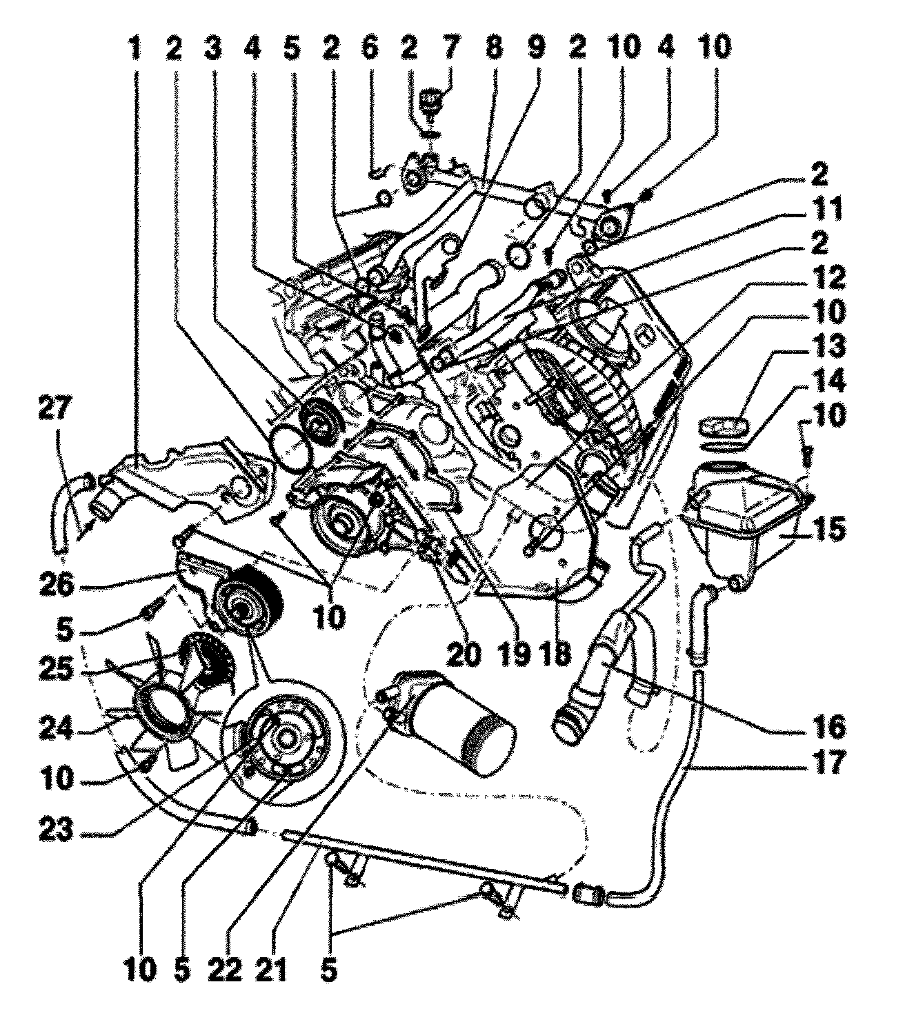Removing and installing, refer to Cooling Fan, Radiator - Fan Clutch - Service and Repair - Procedures Service and Repair