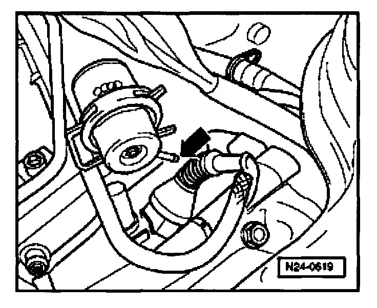 - Pull vacuum hose off fuel pressure regulator (arrow).