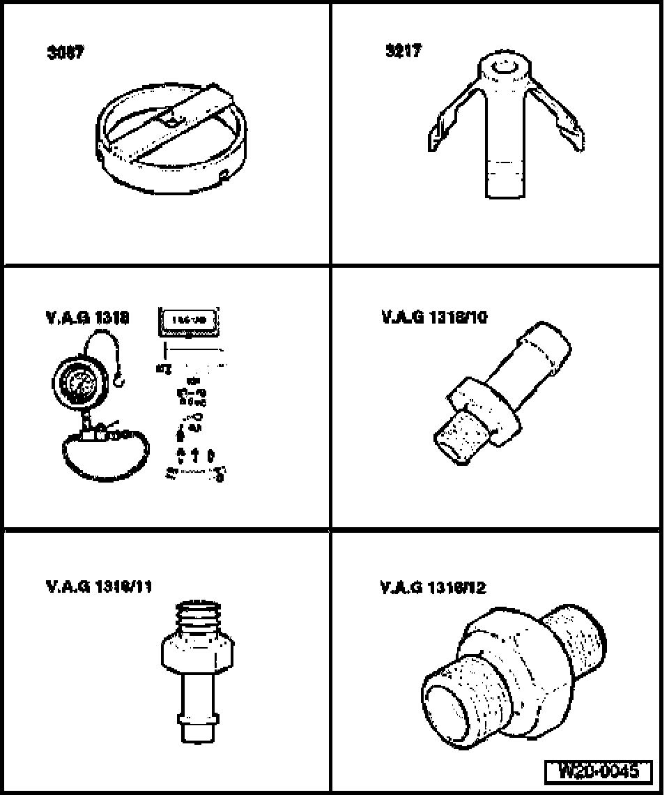 - Connect V.A.G 1318 pressure gauge to hose using V.A.G 1318/10 adapter.