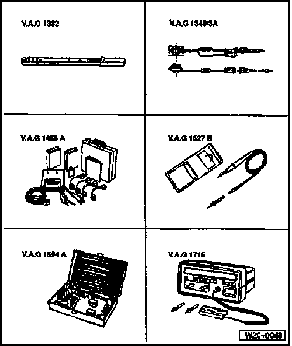 - Connect V.A.G 1527 voltage tester to the outer terminals of the connector.
