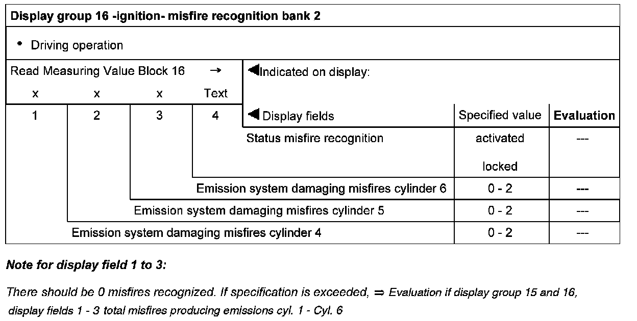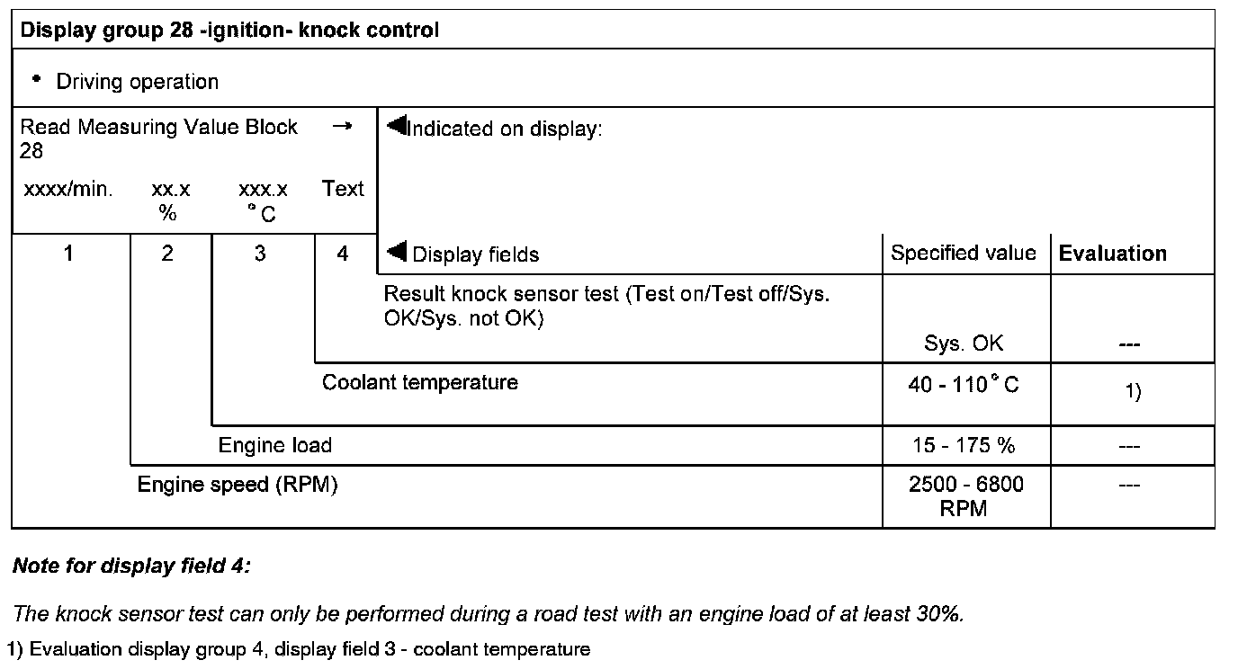 Evaluation display groups 22, 23 and 24 display fields 3 and 4 - ignition timing angle retarding