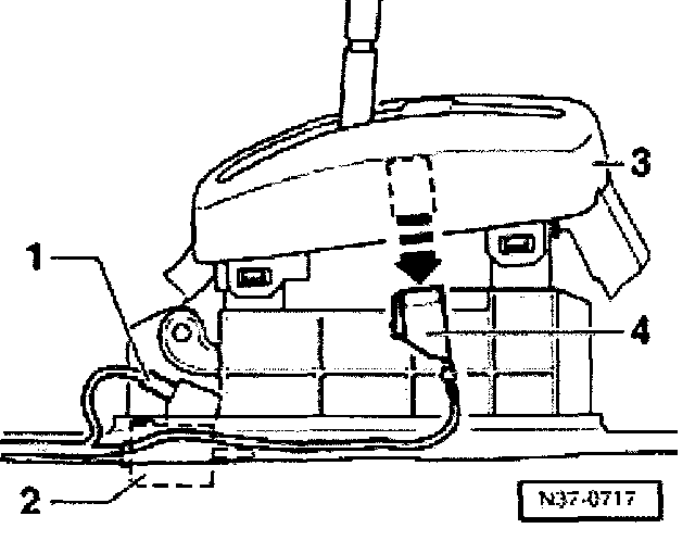 - Pull out connector -4- for gearshift positions and Tiptronic in direction of arrow.
