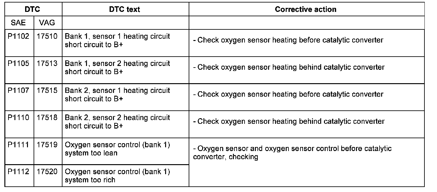DTC P1102 - P1112: