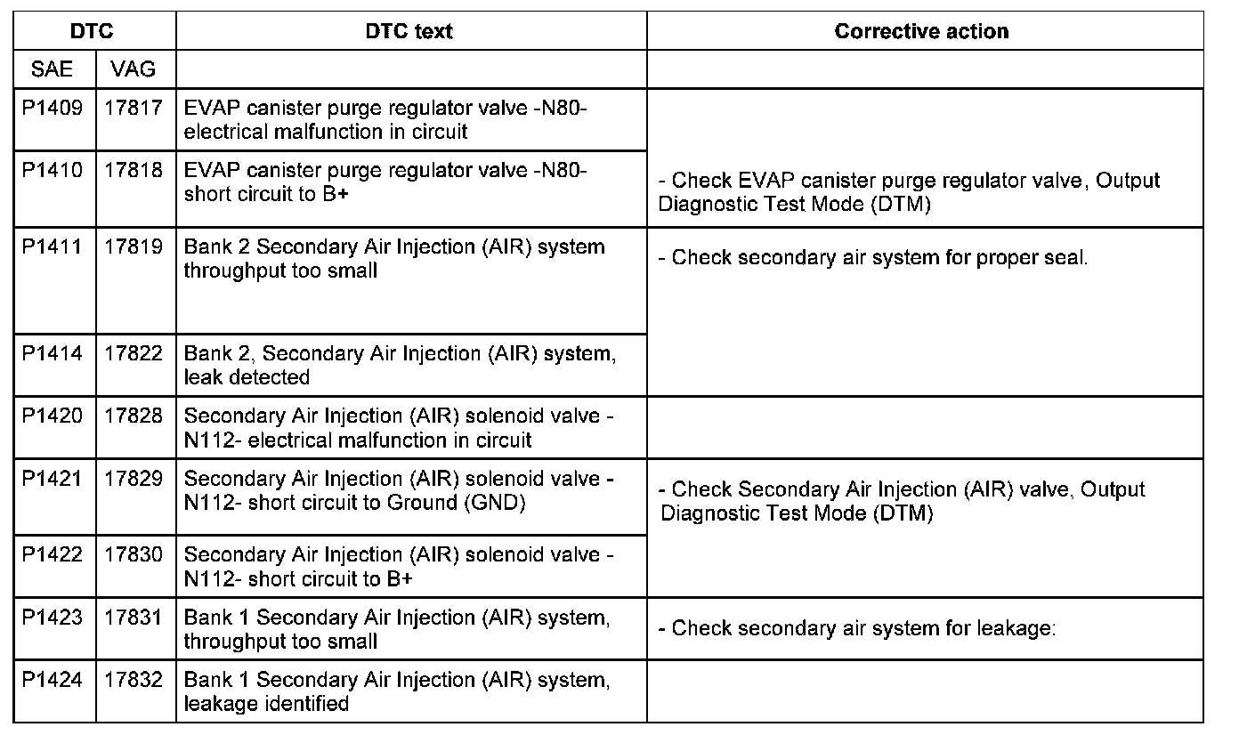 DTC P1409 - P1424: