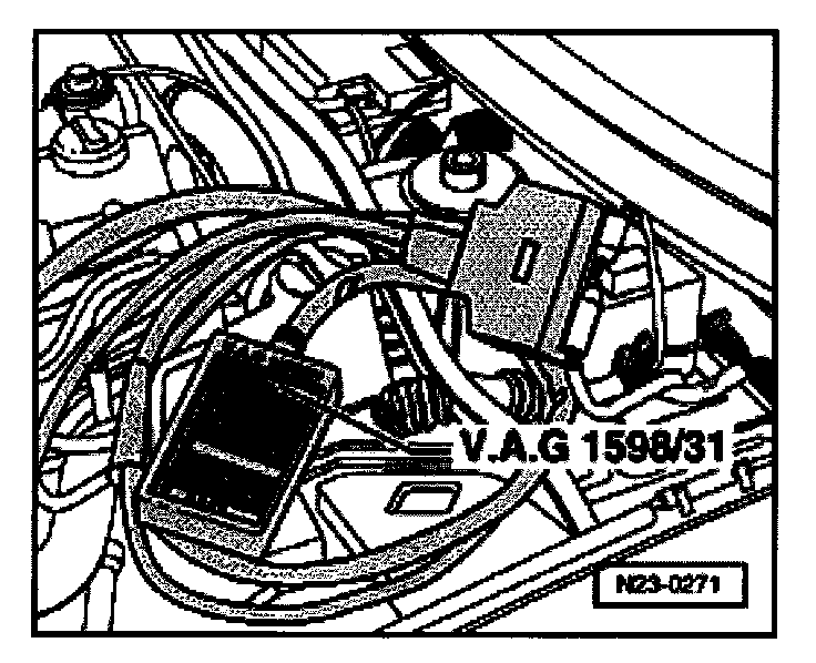 - Connect VAG 1598/31 test box to control module wiring harness. Engine Control Module (ECM) is not connected.