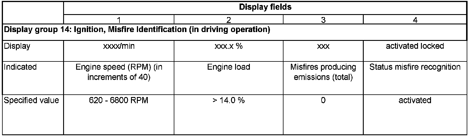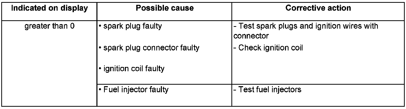- Check misfires in display fields 1 - 3.