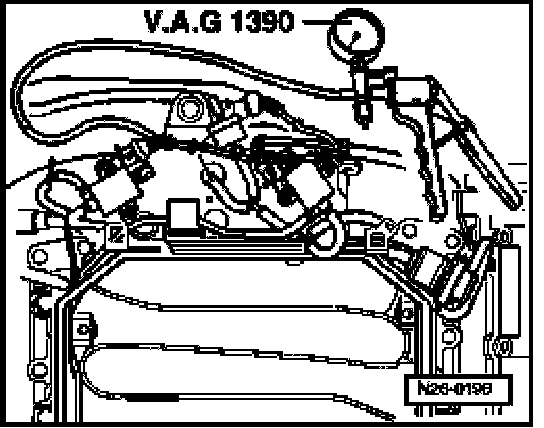 - Connect V.A.G 1390 hand vacuum pump to vacuum hose of the valve to be checked.