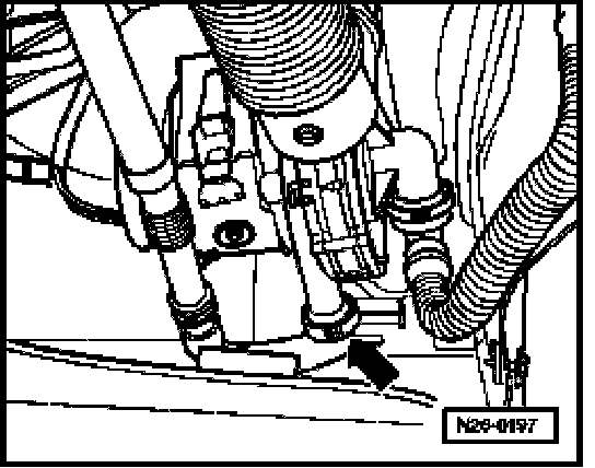 - Disconnect pressure hose (arrow) between Secondary Air Injection (AIR) Pump Motor and connecting line and blow into it with light pressure.