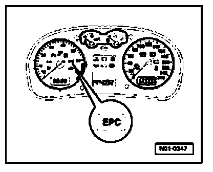 If malfunctions are recognized in the EPC system during engine operation, the instrument cluster switches on the EPC warning lamp. (These malfunctions are listed in the DTC table). An entry is made in DTC memory at the same time.