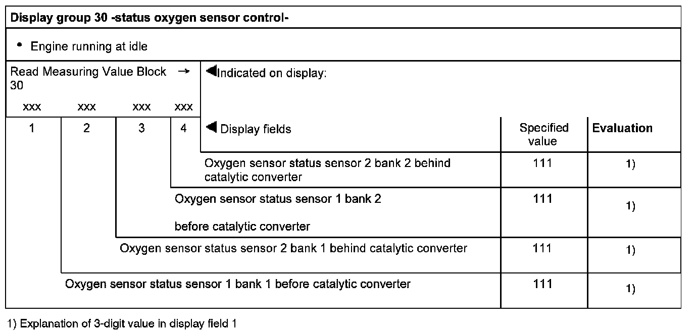 Measuring value blocks, evaluating display groups 30-44, 99 (oxygen sensor control)