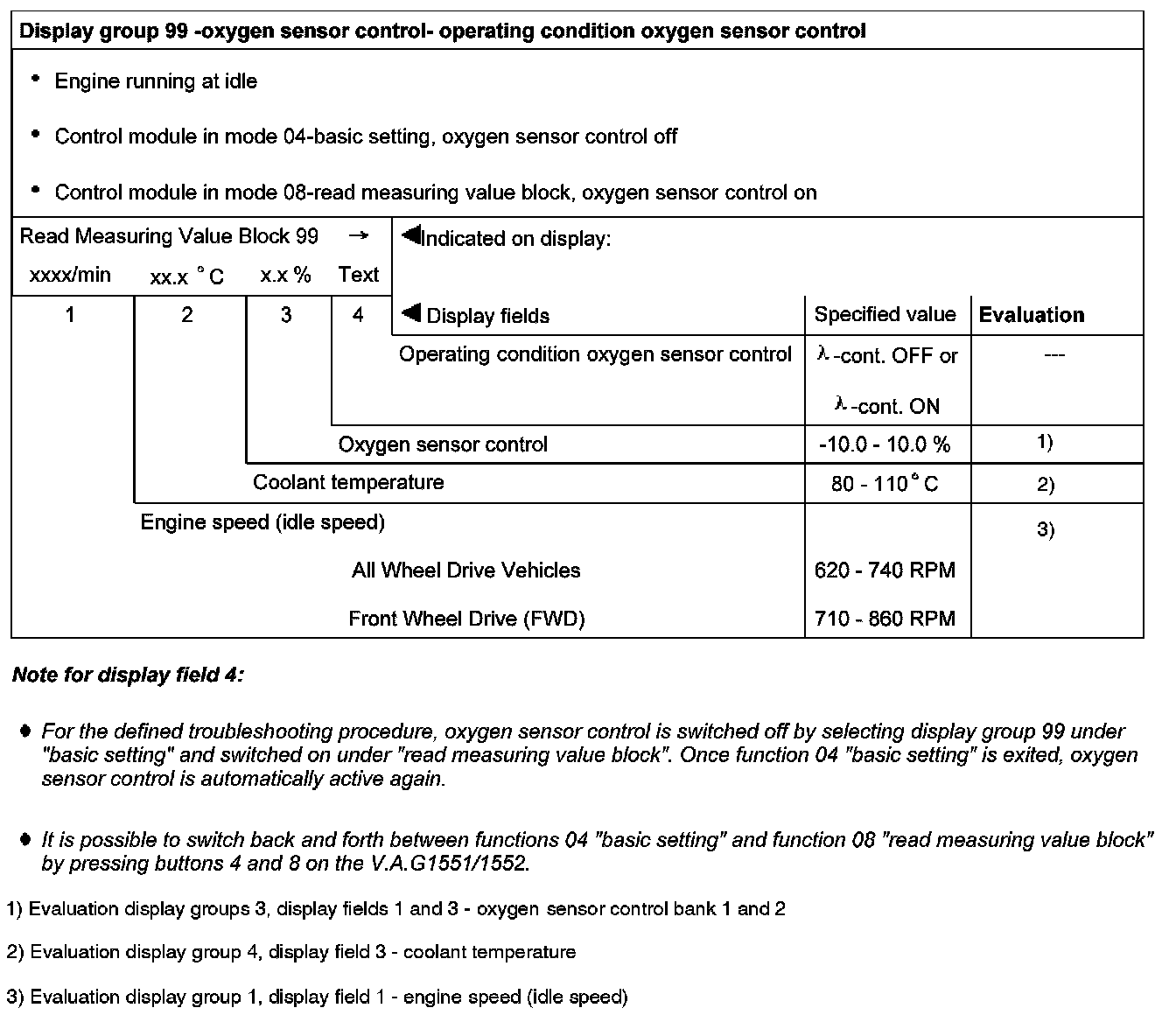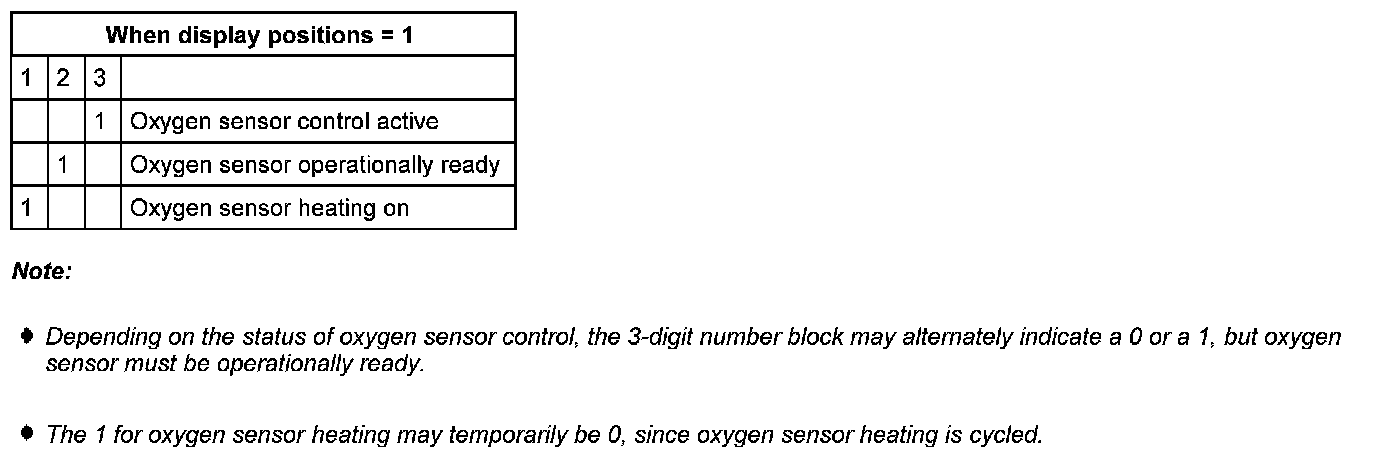 Display group 99 -oxygen sensor control- operating condition oxygen sensor control