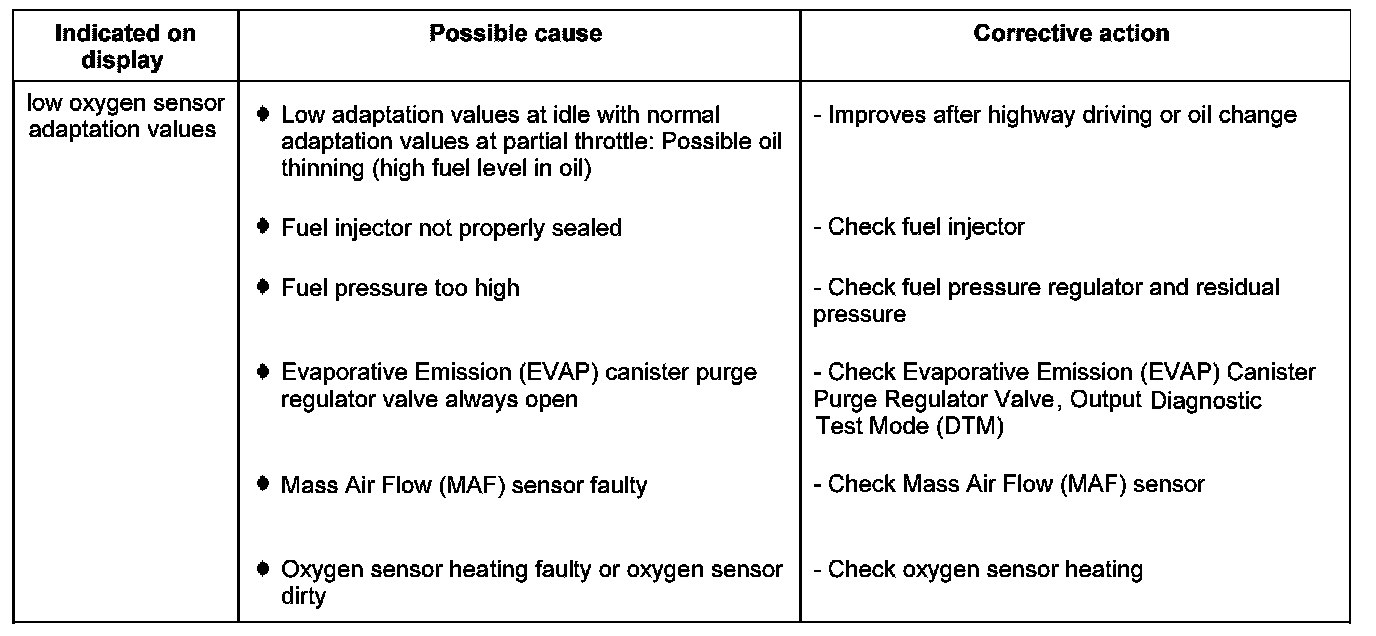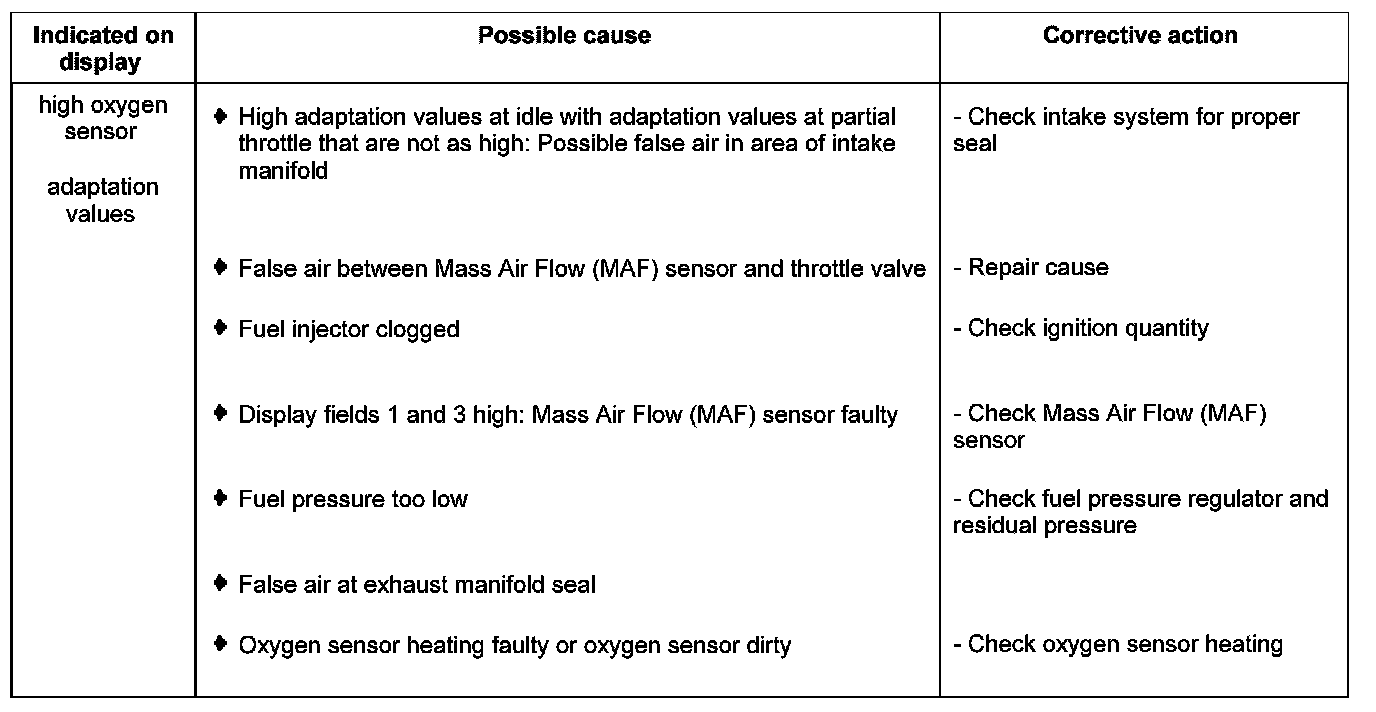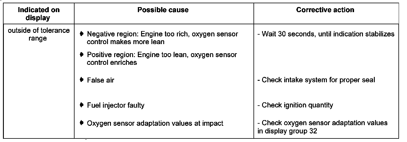 Display group 32 -oxygen sensor control- oxygen sensor adaptation values