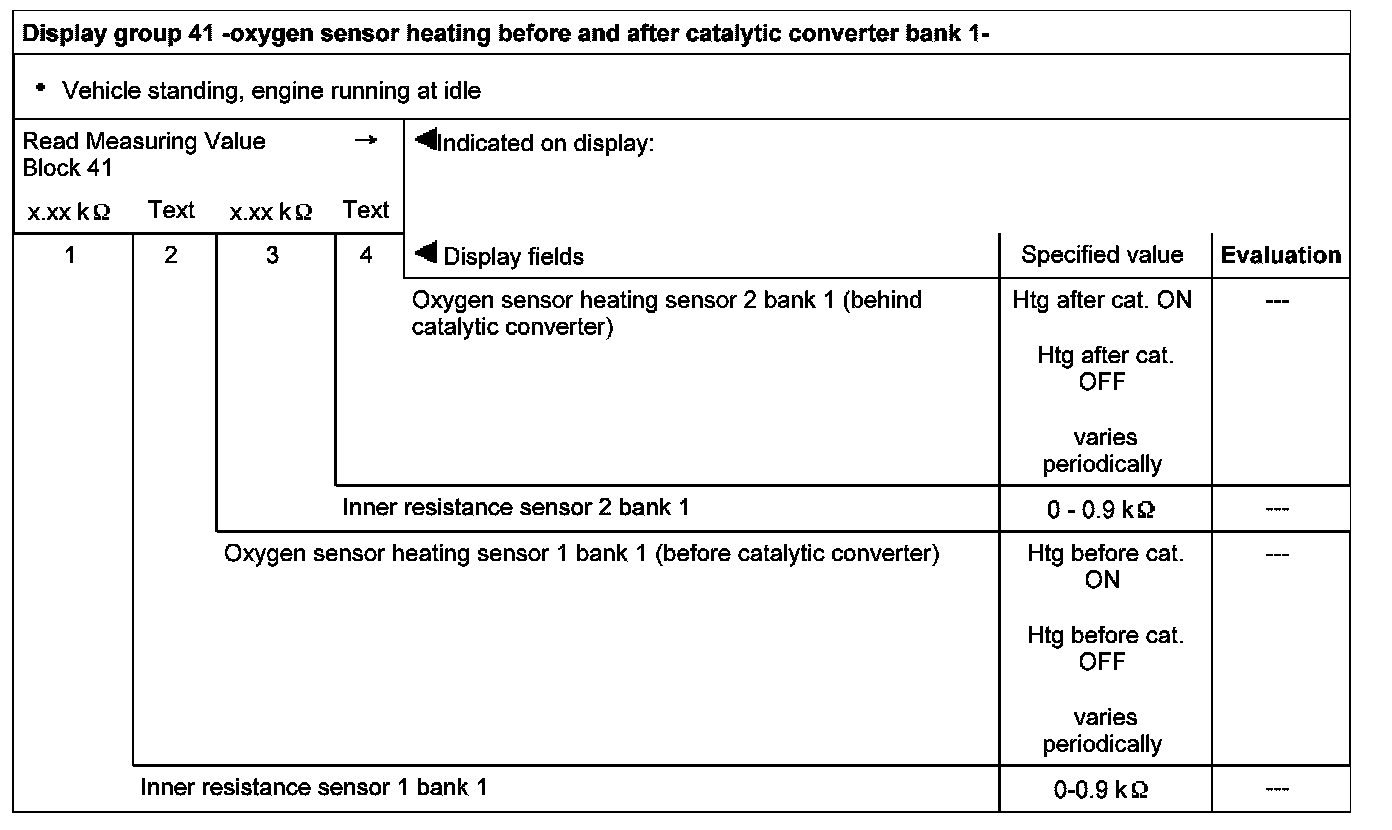 Display group 41 -oxygen sensor heating before and after catalytic converter bank 1-