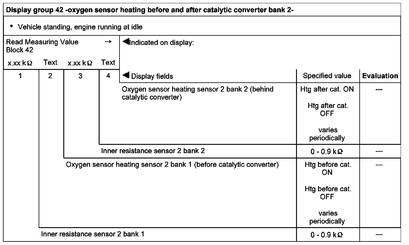 Display group 42 -oxygen sensor heating before and after catalytic converter bank 2-