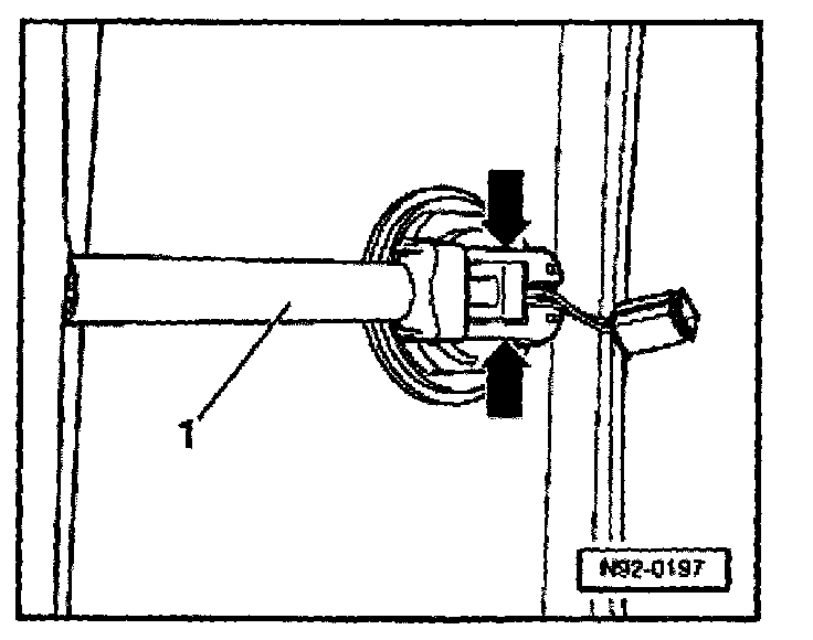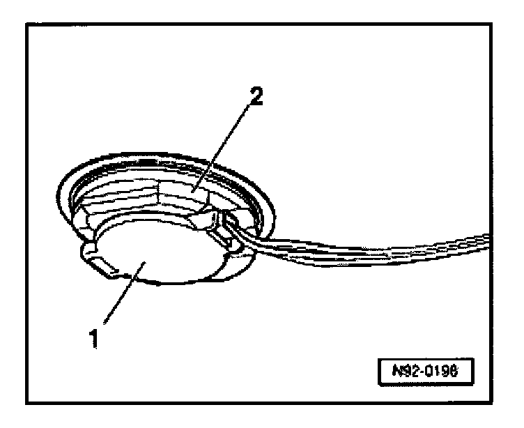 - Insert new rain sensor -1- into mirror mounting -2- and press firmly against windshield.