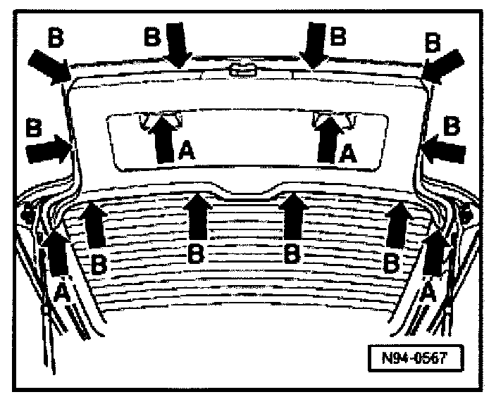 Remove screws - arrows A-, unclip trim - arrows B- and remove.