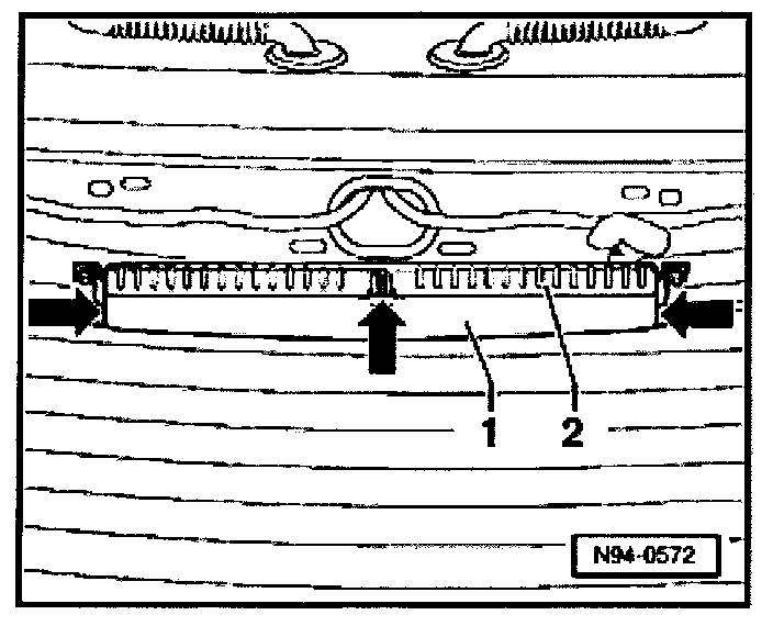 - Depress locking clips -arrows- and remove bulb holder -1- from mounting -2-.