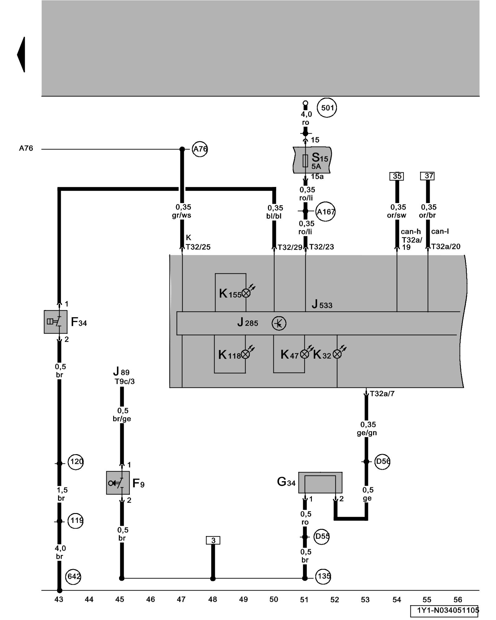 T32 - 32-Pin Connector, blue, on instrument cluster