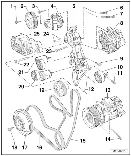 20 Ribbed Belt Tensioner, for the A/C Compressor Belt, 35 Nm