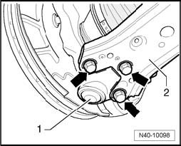 - Insert pressure bolts - 1 - into wheel bearing housing.