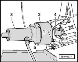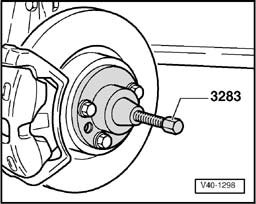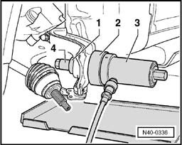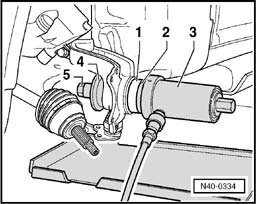 CAUTION: Place engine/transmission jack V.A.G 1383 A underneath (danger of accident if parts fall off when ejecting wheel hub and wheel bearing).