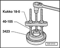 - Put wheel bearing - 1 - , pressure piece - 2 - (put collar into bearing), and hollow piston cylinder - 3 - with tie bolt on wheel bearing housing.