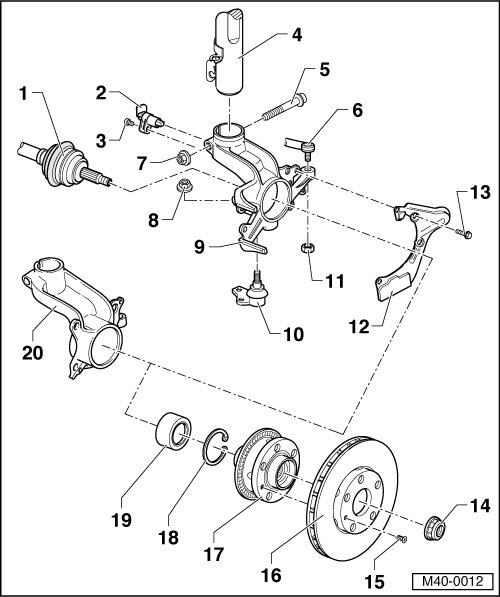• Welding and straightening work on supporting or wheel bearing components of the front suspension is not permitted.