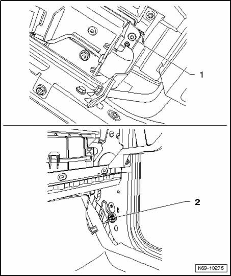 - With a passenger airbag without ground line - 5 - , the wiring harness - 6 - is a two connector harness and no additional cable is secured on the threaded pins - 7 -.