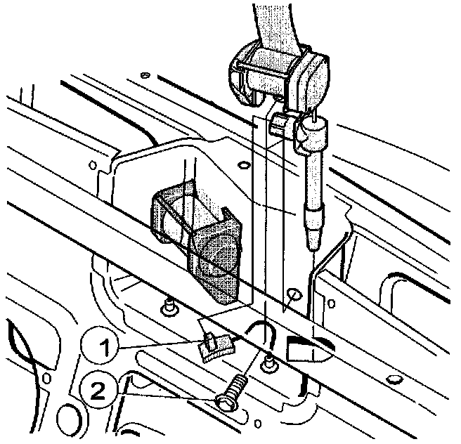 Remove 1 screw (2) from the seat belt roller with tensioner.